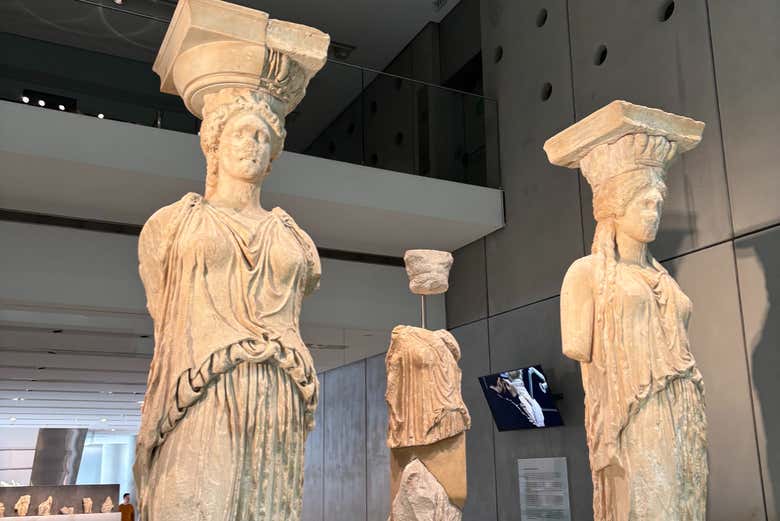 - Las Cariátides originales: contemplaréis de cerca cinco de las seis estatuas originales que sostenían el Erecteion, famosas por el increíble detalle de sus peinados y túnicas.